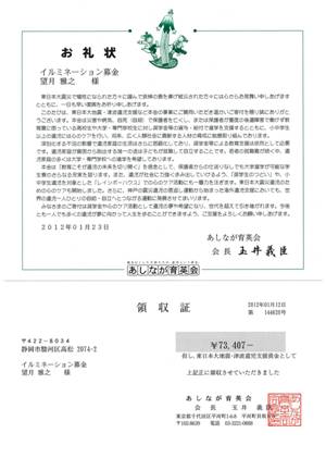 (東北大震災被害遺児へ) |