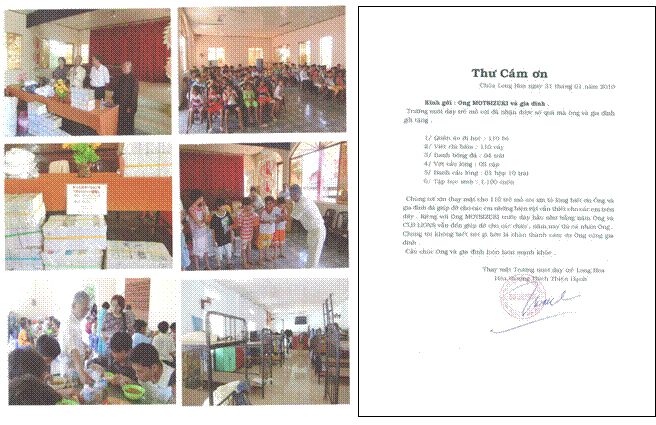 ロンホア孤児院からの礼状 |